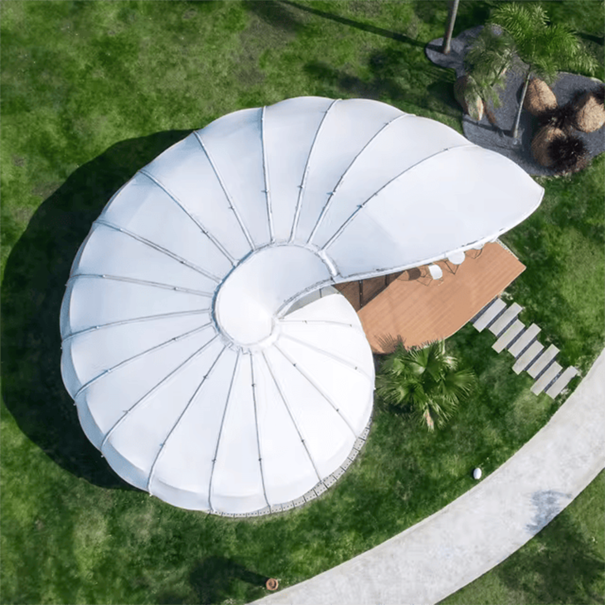 Moon Space is a perfect tent that provides close contact with nature. When night falls, the lights in the tent are soft and blend into the surrounding natural environment, creating a quiet and comfortable resting space for you. In the tent, you can get away from the hustle and bustle of the city and feel the tranquility and harmony of nature.
